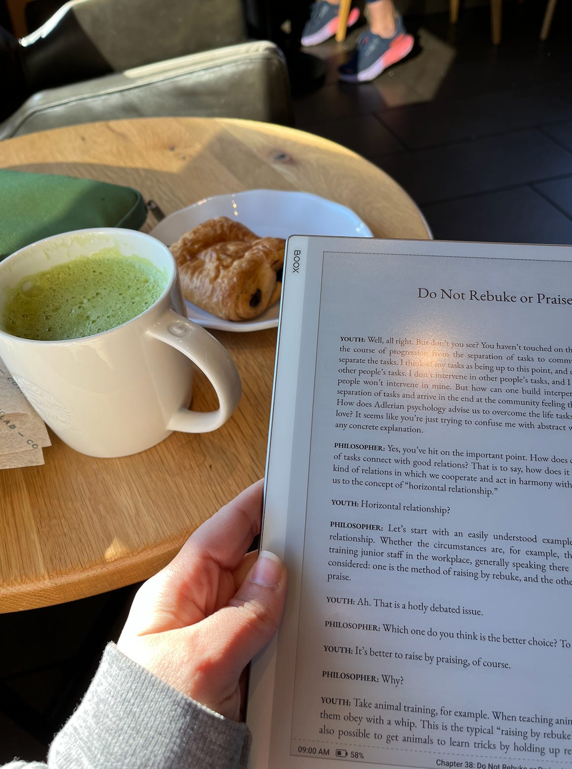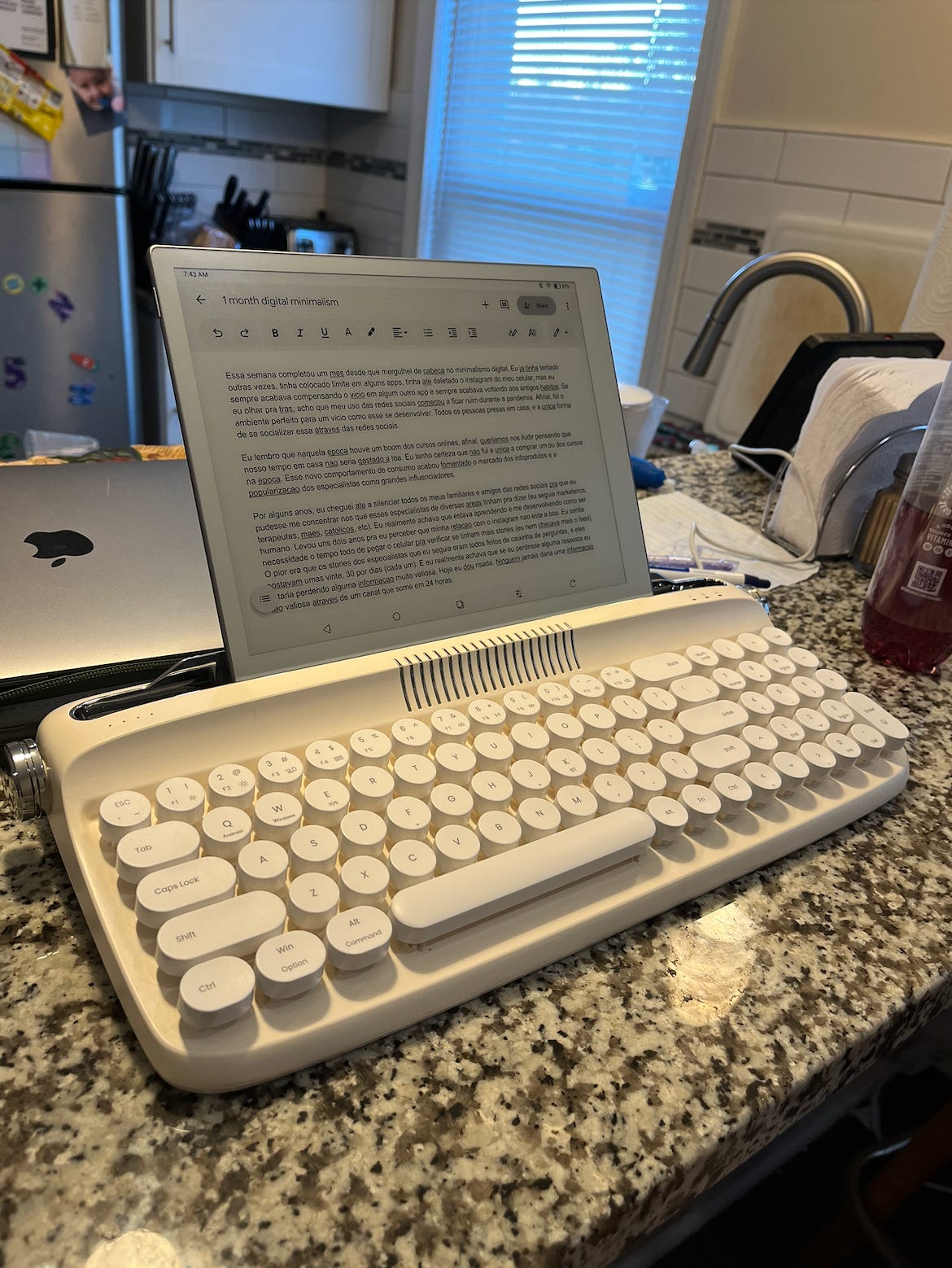 With the Boox came a keyboard. My mornings now begin with the quiet rhythm of typing. After my son wakes up and we have breakfast, I sit for a few minutes and read from the newsletters I save in Readwise Reader (I wrote about it here). I love that I can collect everything I truly want to read without opening my inbox or facing any algorithm. It’s a curated, deliberate kind of digital consumption. And I knew the device wasn’t addictive when my almost-two-year-old saw me using it and didn’t even try to grab it.
